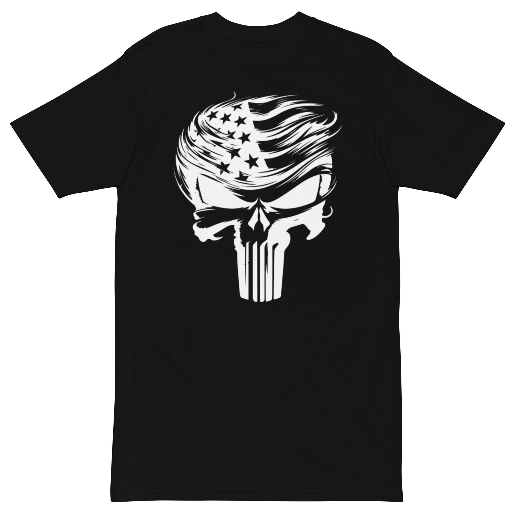 Show your unapologetic love for freedom and strength with the “American Punisher” Premium Heavyweight T-Shirt. This bold design fuses patriotic pride with an edge of relentless determination. The iconic skull, detailed with the American flag and signature comb-over, represents unwavering resilience and the fighting spirit that defines true patriots.
