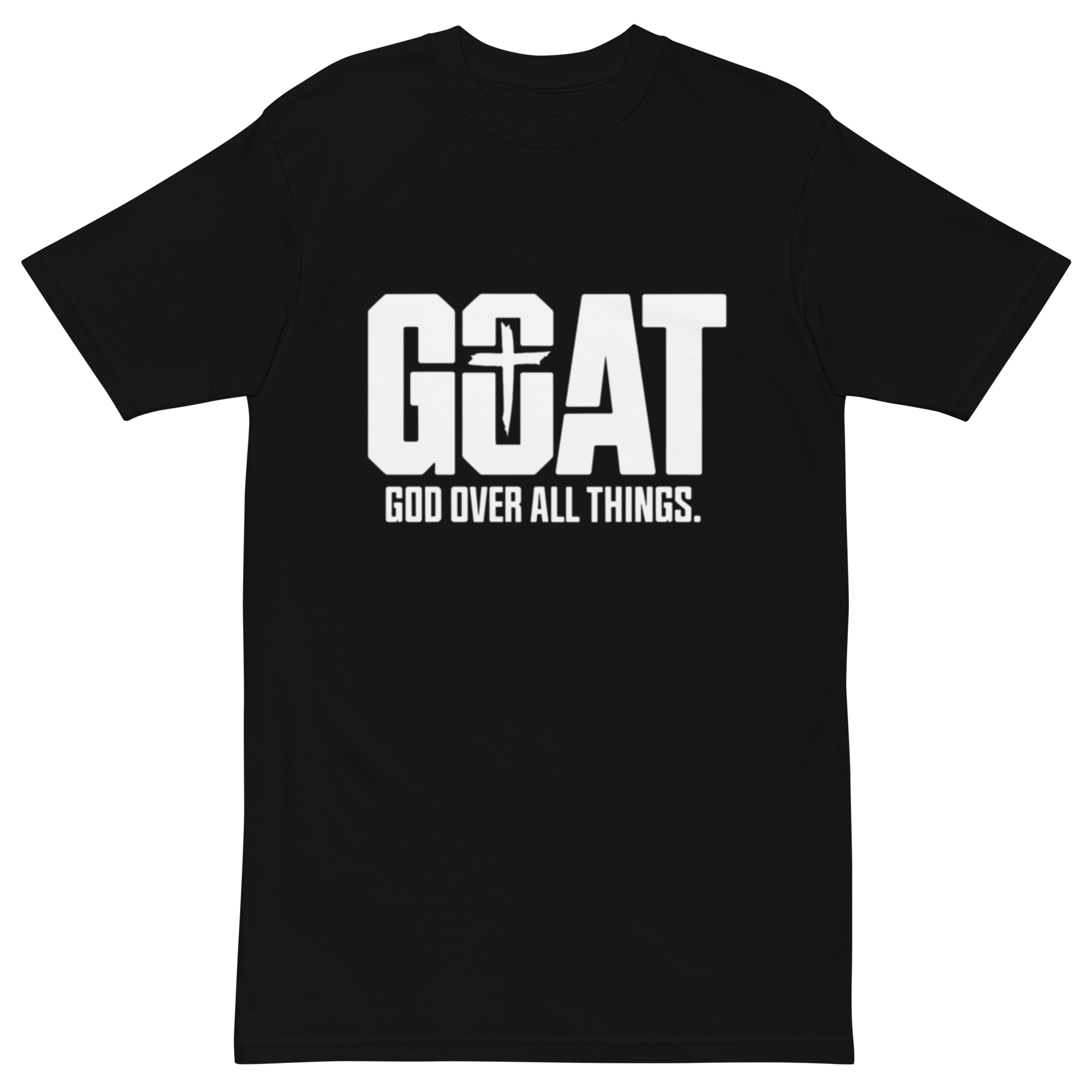 Let your faith lead with the “GOAT – God Over All Things” Premium Heavyweight T-Shirt. This bold design is a reminder that true greatness comes from putting God first in every aspect of life. With a powerful cross embedded in the “T,” this shirt speaks to the heart of believers who trust in His ultimate authority.